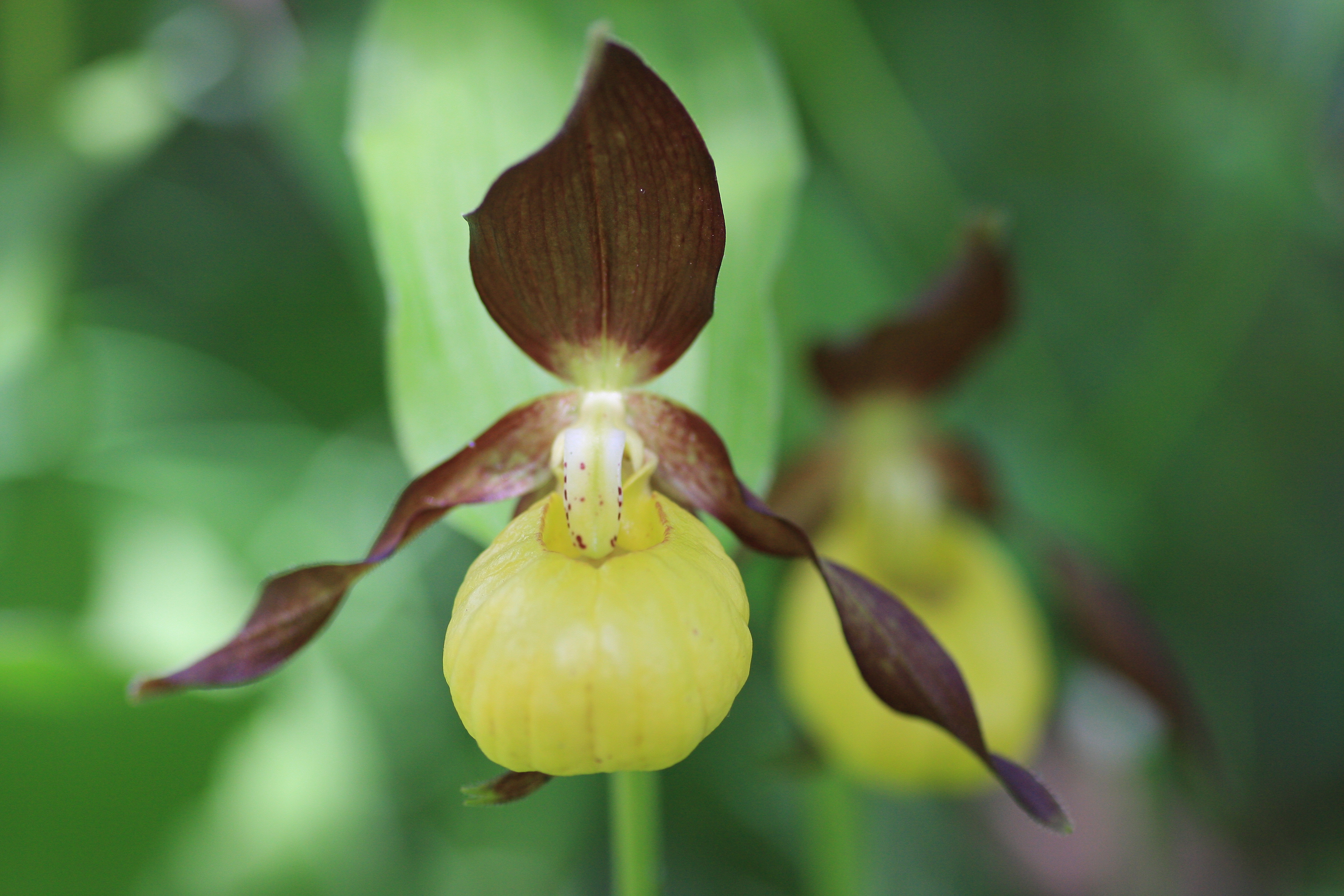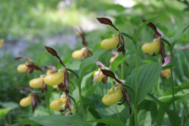 Take your pick. Frauenschuh, down to earth; lady’s slipper, more refined; but I prefer sabot de Venus. The French win with that nice conjunction of clogs and Venus. (Like the pop song? Venus in blue jeans?)