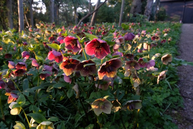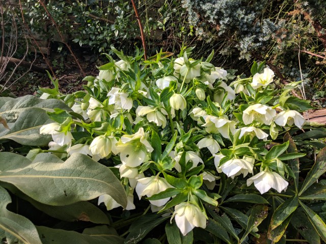 Avoid Helleborus niger, which is often used in garden centres to make a big show around  christmas, when it flowers. (It’s sometimes still known as the Christmas rose, though hellebores are not related to roses: they’re actually in the same family as buttercups. Our hellebore used to be known as the Lenten rose, but that title has faded along with the significance of lent, and maybe because of climate change it begins to flower much earlier than lent.)