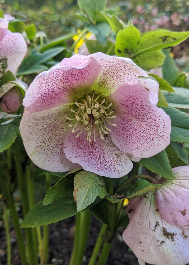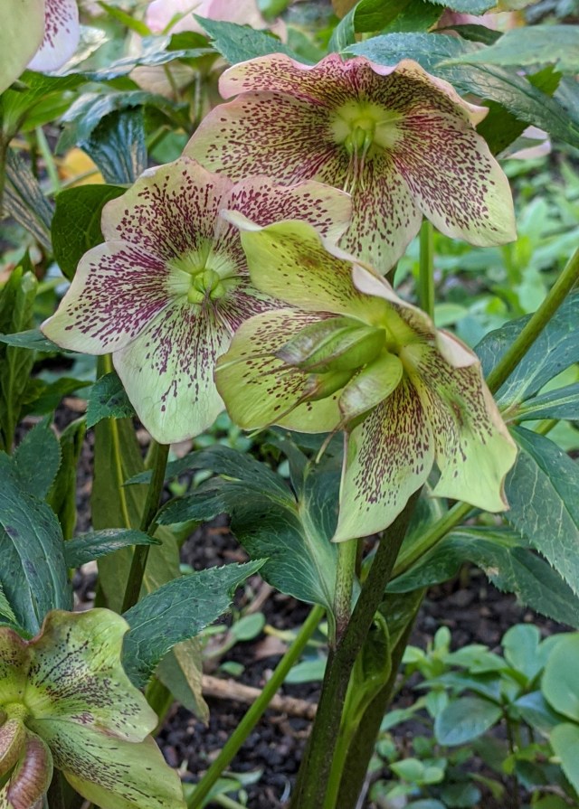 It’s the plant of the month. Well, last month maybe. (April  does bring strong competition.) And the month before. They begin to flower in January and still look good in April; the petals keep their colour. No species is so varied, and that is why they have decided that it’s not a species after all, but a group of garden hybrids, hybrids of the true H. orientalis, which grows in northern Turkey near the Black Sea, and some of its  Balkan neighbours. Anyway, some photos: