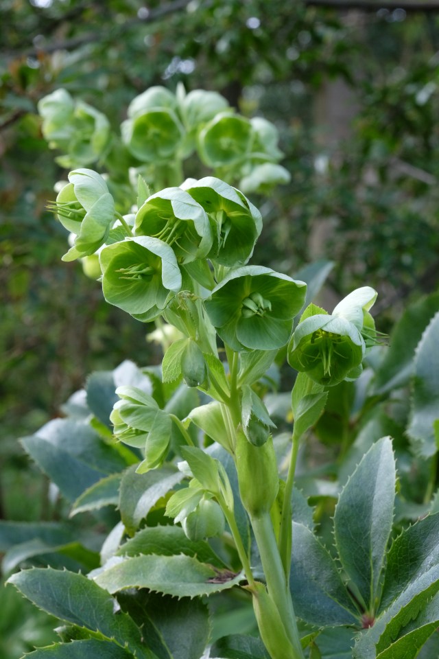 And here’s the elegant and neglected Helleborus argutifolius, which most gardeners still know as H. corsicus. Maybe they changed the name because it is also found in Sardinia.