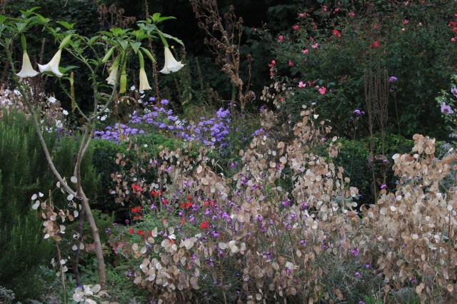 I don’t know why they’re neglected in garden centres. You’ll find other foxgloves and verbascums, sometimes more tricky to grow and sometimes called perennials when they aren’t. To get going with them you need to get seeds or seedlings from friends, or just help yourself to seeds – you’ll see them in overgrown front gardens, or on waste land. So they belong to an older style of gardening, when people exchanged plants instead of just buying everything at the garden centre, and they allowed things to happen in their gardens; they weren’t in total control. This style of garden came to be known, rather patronisingly, as the cottage garden. And maybe it was a mythical kind of garden anyway, maybe it was actually the liberal bourgeois who liked what they thought of as the picturesque gardens of the poor, while the poor were busy with the hoe, trying to order and control their little plots after the manner of the upper classes, putting nature firmly in its place.