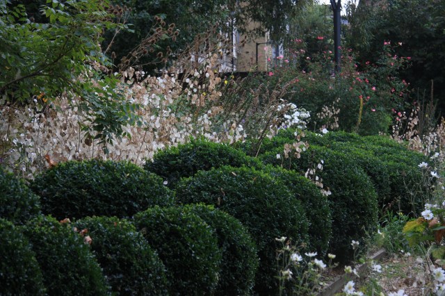 The next two were taken years ago in early May, in Mint Street park, SE1, where I worked in St Mungo’s gardening project for homeless people, Putting Down Roots. I wonder if the boxes are still alive? The caterpillars of the box moth have wiped out thousands in London. Sometimes in gardening it turns out that the plants you thought would outlive you die suddenly, but because they produce so many seeds, a settlement of annuals and biennials lives on.