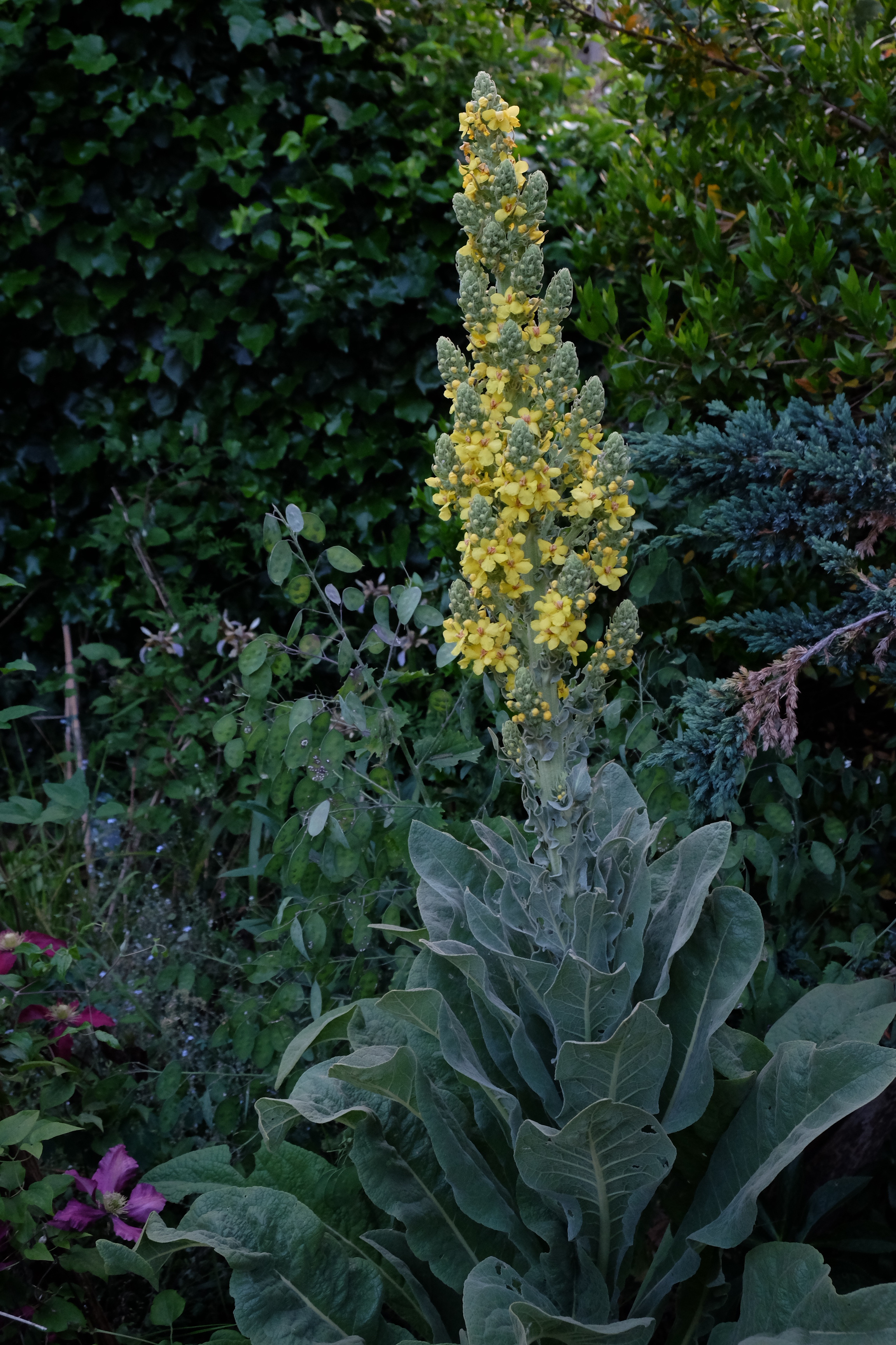 Verbascum olympicum is racing ahead – this picture was taken five days (I think) after the one in the previous post, Garden Notes no 21, picking about the gravel. Verbascum, foxglove, Koelreuteria, etc.