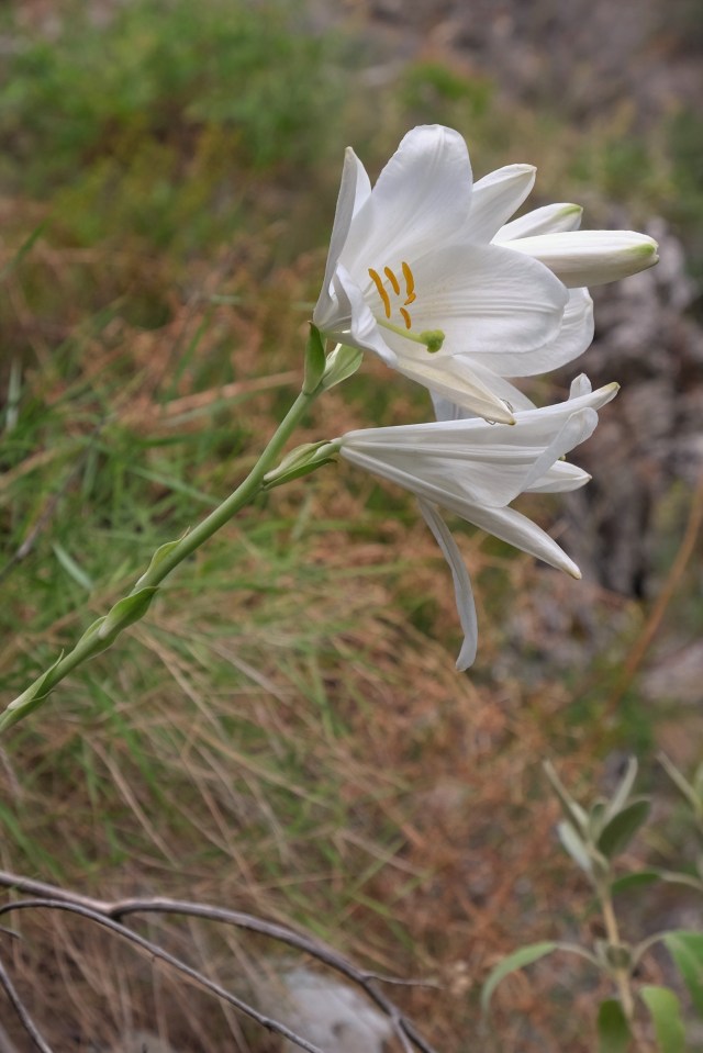 But it made me nostalgic for the Lilium candidum I saw in Greece. A path leads up along the side of a gorge which takes you from orange groves in the plain near Mystras up into the Taygetos mountains. Every lily near the path had been picked, but I saw one or two on a steep and tangled rocky bank and managed to squeeze and crawl towards them.