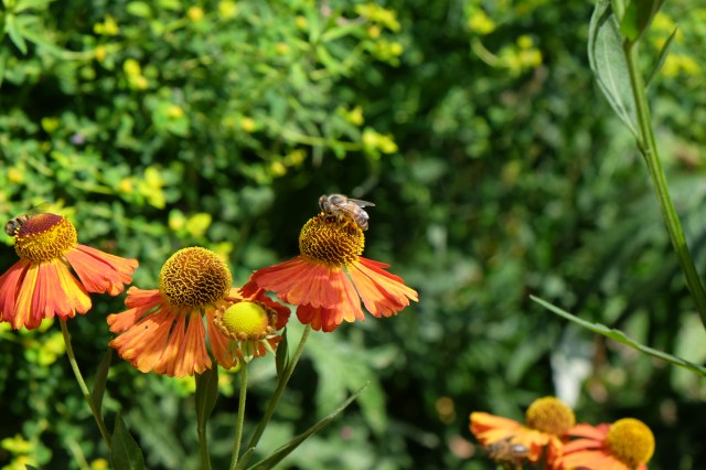 We’ve got a new bee hive at St John’s, and lots of very happy bees. At the moment they’re particularly keen on echinops, (globe thistle), and helenium: