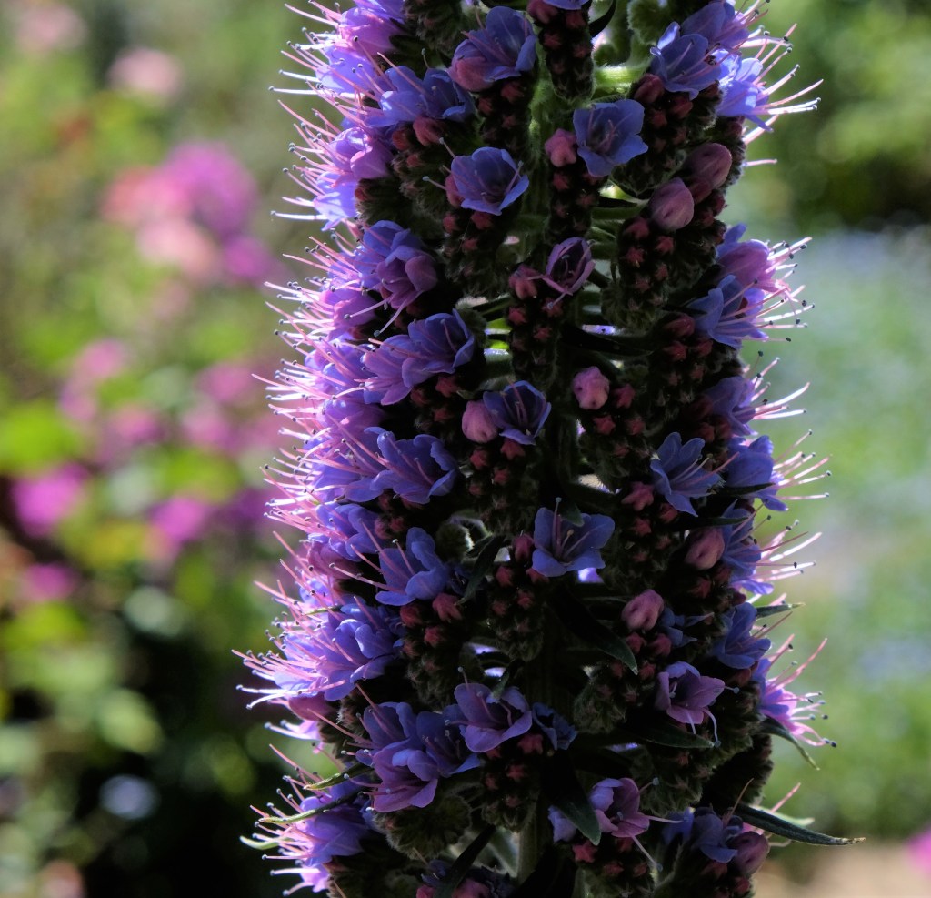 Practically invisible on this phone. Look on a computer if you can. The photo of the echium is one I took earlier, years ago . Here’s a close-up of mine, which flowered for the first time this year, after almost dying twice, in two frosty winters, it sailed through last winter and grew five spikes of bright blue flowers which the bees flock to: