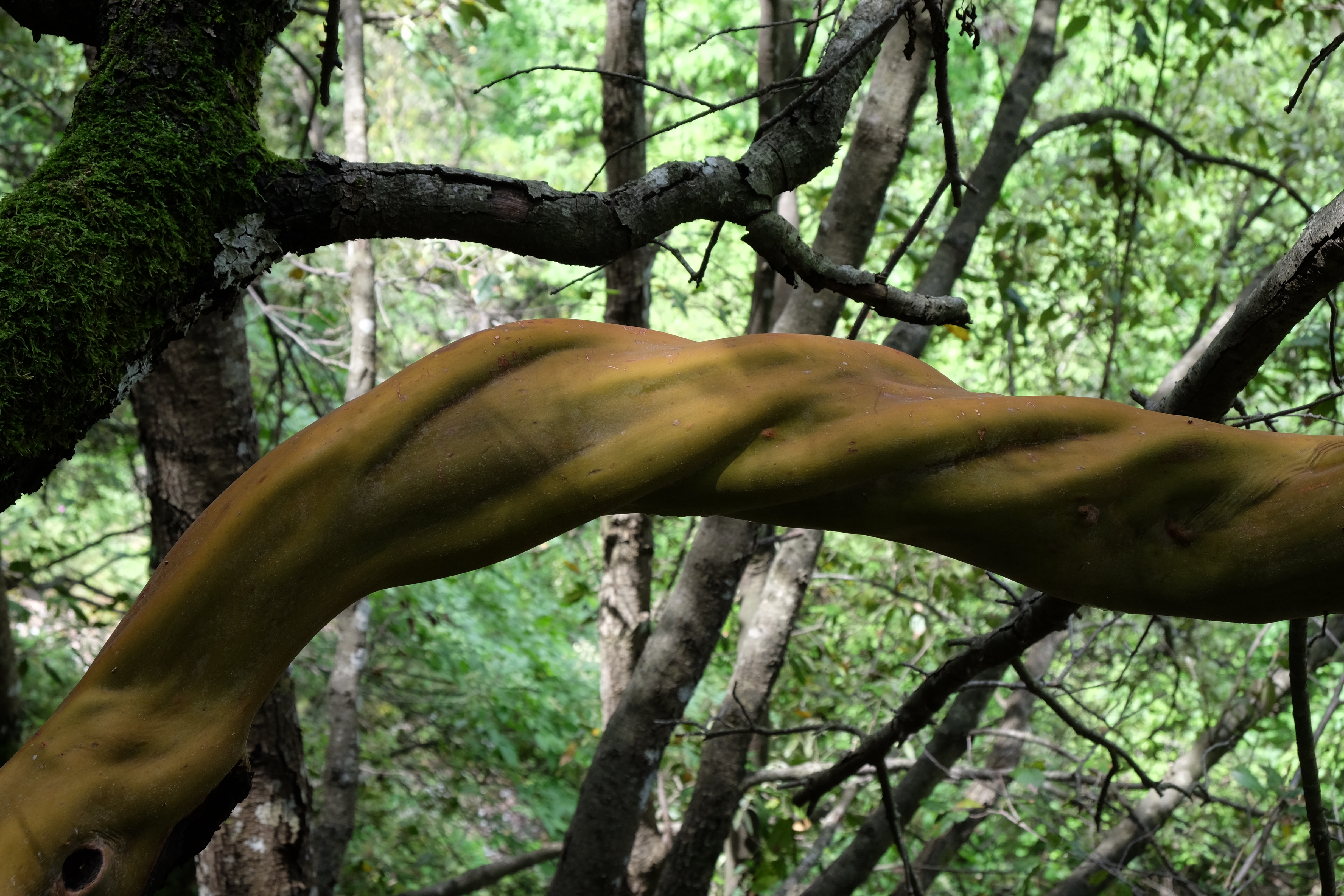 Particularly beautiful is a variety of arbutus, or strawberry tree, Arbutus andrachne, (not the one that is common throughout the mediterranean and in our gardens) with this lovely bark:
