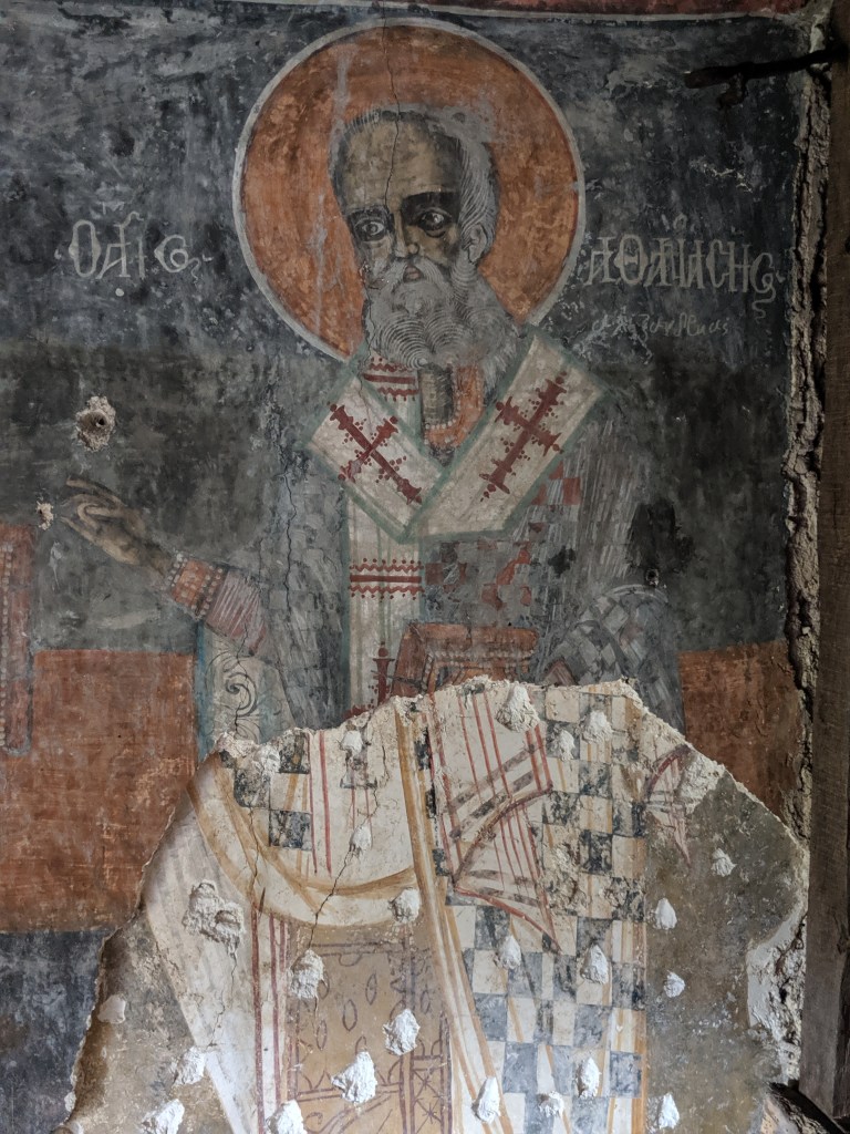 I went into the chapel which has frescoes of saints looking puzzled and anguished – saints who strain to understand?