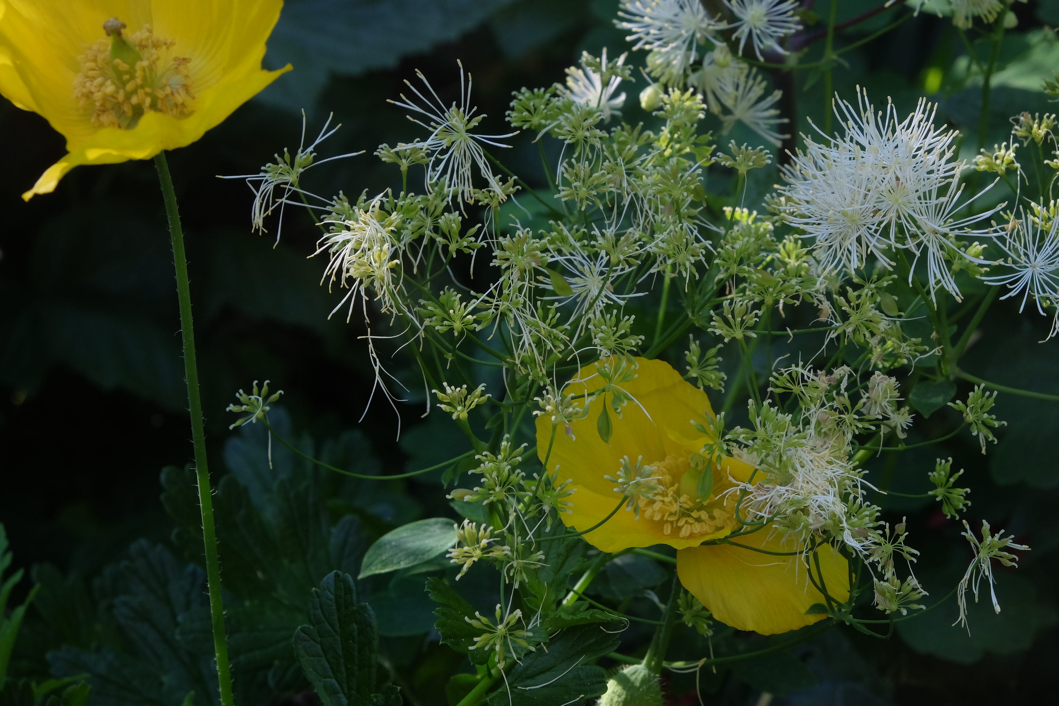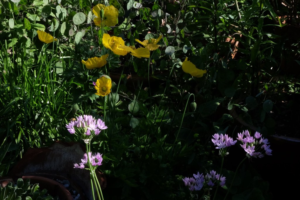 From just a few days ago… the end of spring – the heat is withering the thalictrum flowers, the welsh poppies seem fragile.