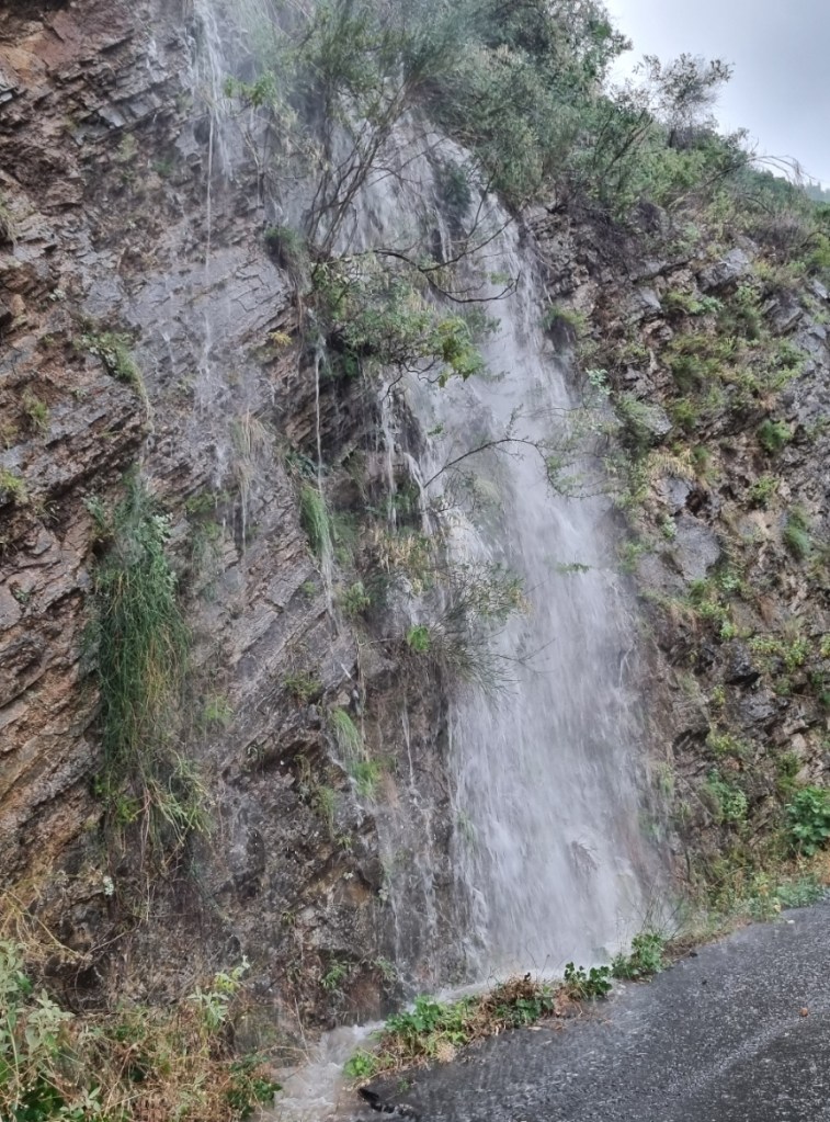 But I can’t say I’d worked at this. It had been forced upon me by my experiences of the magical, overwhelming power of water this summer, in Greece of all places. Greece of dry rock, dead summers, burning heat. But also, this summer – last summer – phenomenal rain. During one downpour (of course pours are always down, that’s gravity) I drove past a waterfall that looked superficially like a regular waterfall, one that might have a name and a reputation and a continuous or at least semi-continuous existence, a river suddenly come upon a sheer drop and diving down over the rockface in multiple interwreathed channels, but it was a rockface that in most summers would stay dry for months, and if you touched it in the evening you would still feel the heat of the sun upon the stone.