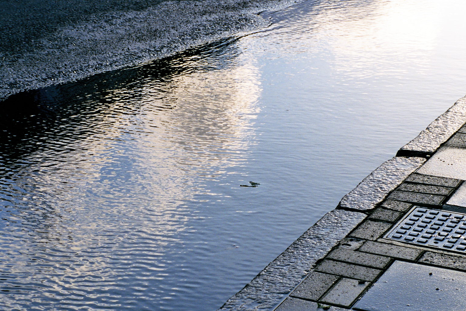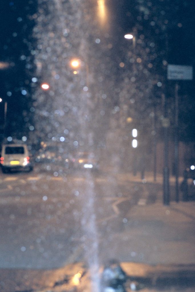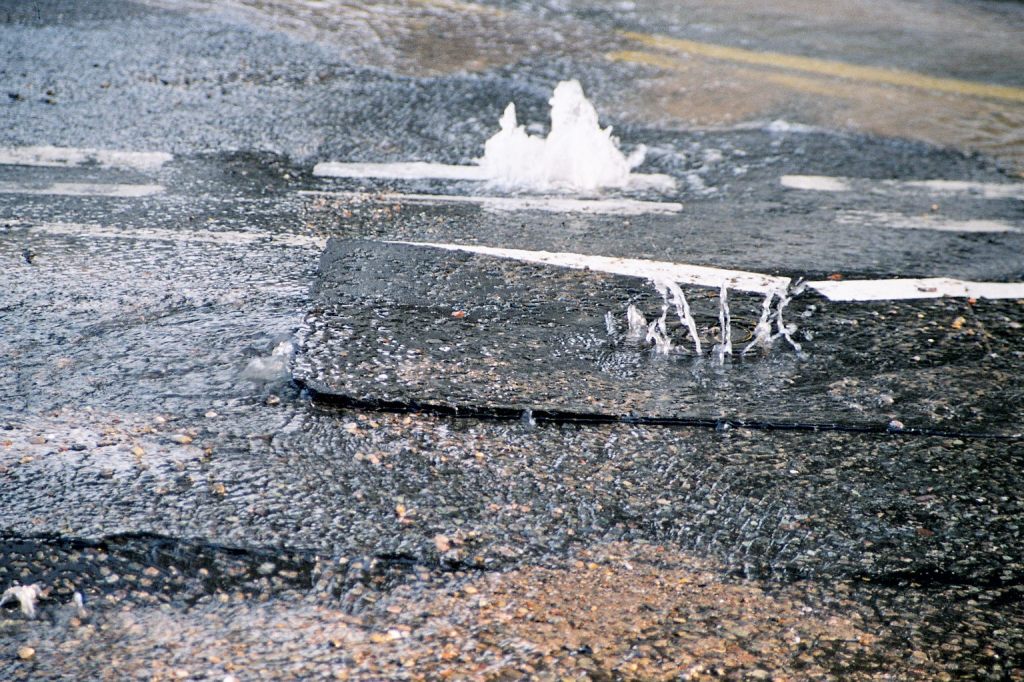 This was about ten years ago. Unlike the nasty, filthy, muddy puddles strewn with litter, if you get a good burst pipe making a spring of drinking quality and it’s been raining to clean the road somewhat you get a tranquil water feature, with a patch of cloud and a hint of blue reflected. And right outside my house! I should be grateful for the entertainment. In contrast, another seismic show from about fifteen years ago: