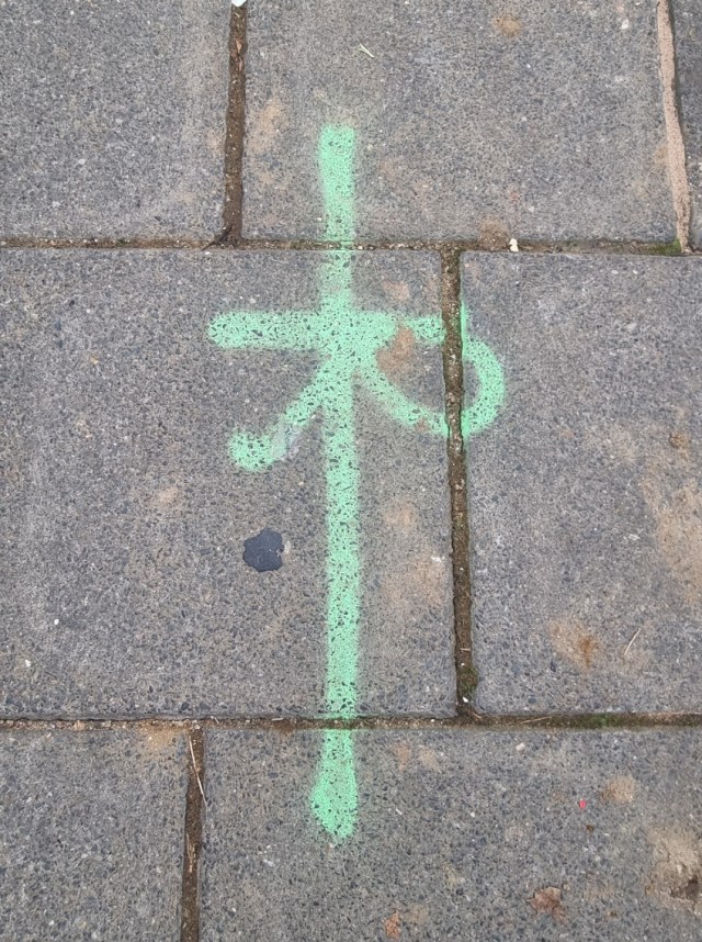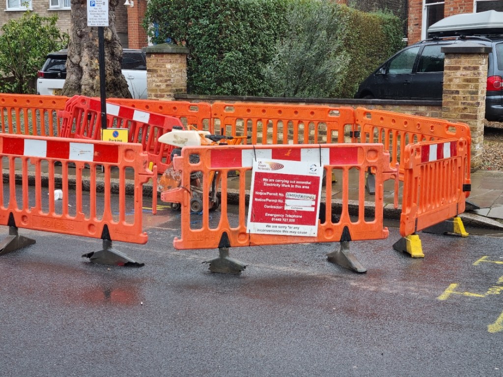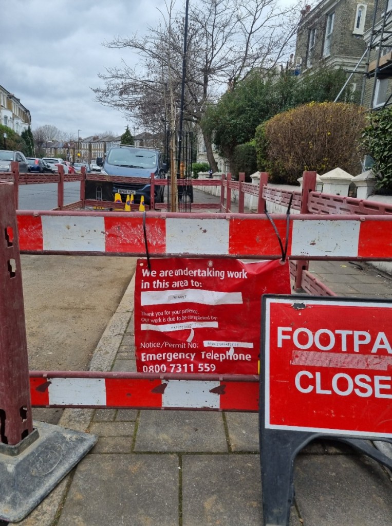 I think I can make out the word fault. But what kind of fault, it doesn’t say. No utility company – that’s a nice old fashioned word, out of the monopoly board – dared speak its name. And it’s not true that the footpath was closed. It was merely narrowed. Further up the road BT have been busy for two or three weeks now pumping in super fibre as if it might fulfil a cleansing function like muesli or whole meal bread in the guts of the city. And we’ve had essential Electricity Work just recently as well. We’ve got everything.
