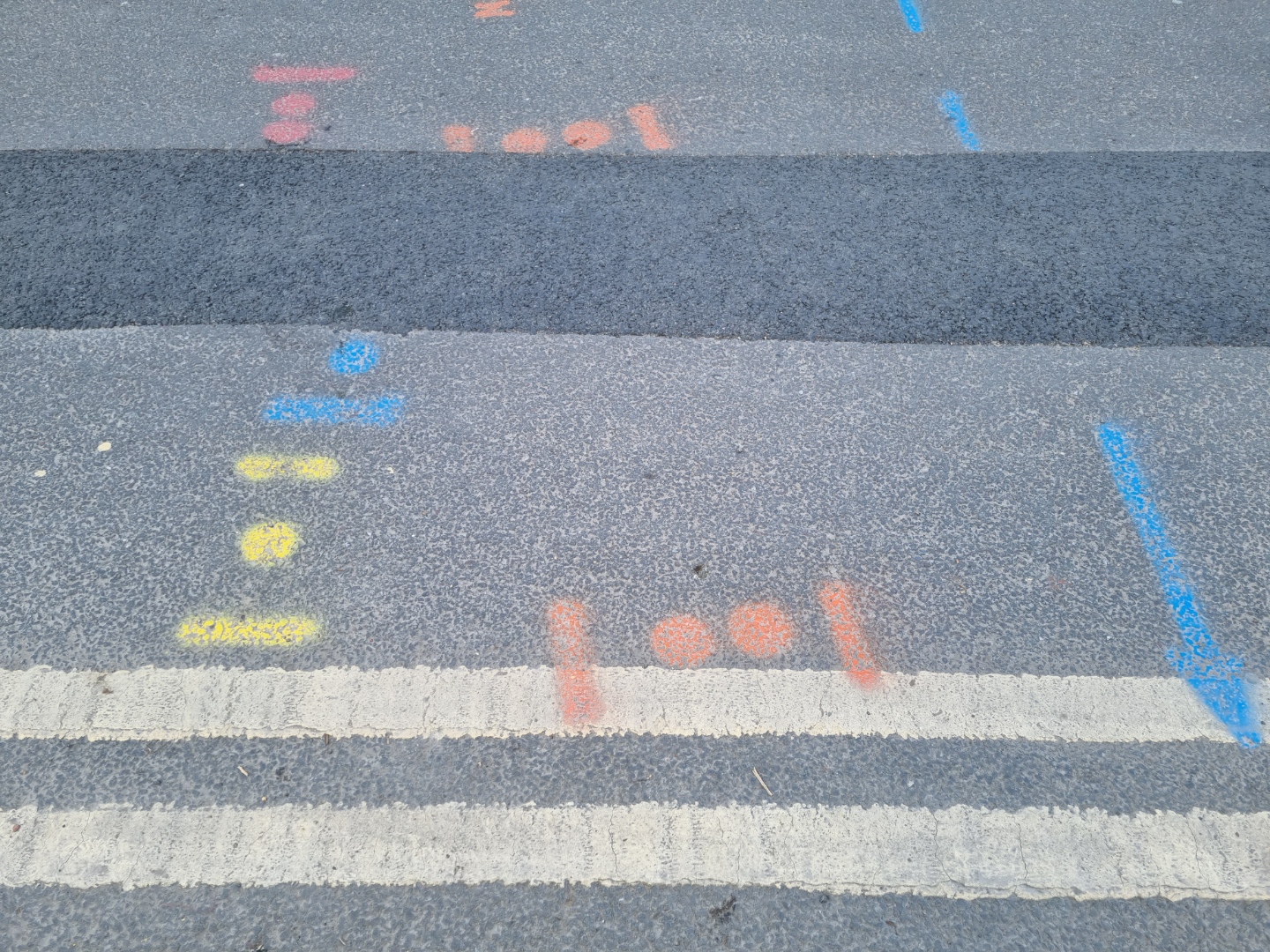 I was away for a couple of weeks and when I came back the street was strangely quiet. No orange pink plastic barriers, no drilling or digging, no temporary traffic lights, no heaps of clay, no cheerful PR sign boards. Up where the lids were broke, though, more mysterious signs have appeared: