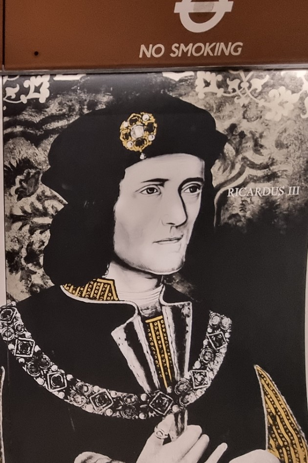 Just one more, not a monarch, but a man who at one time seemed as powerful as one, also a leading protagonist in Wolf Hall, Cardinal Wolsey, his disgrace and his appetite for good living figured in the litter bin that Transport for London have fixed to his chest: