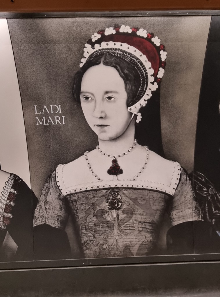 Violence and brutality live longest in our imaginations, and this is Queen Mary, bloody Mary, whom you might remember as a sad princess in Wolf Hall. The daughter of Katherine of Aragon and Henry the eighth, she finally came to the throne, set about changing the newly protestant nation back into a catholic one, and had 300 heretics burnt to death. You see what sadness, victimisation and isolation can lead to.
