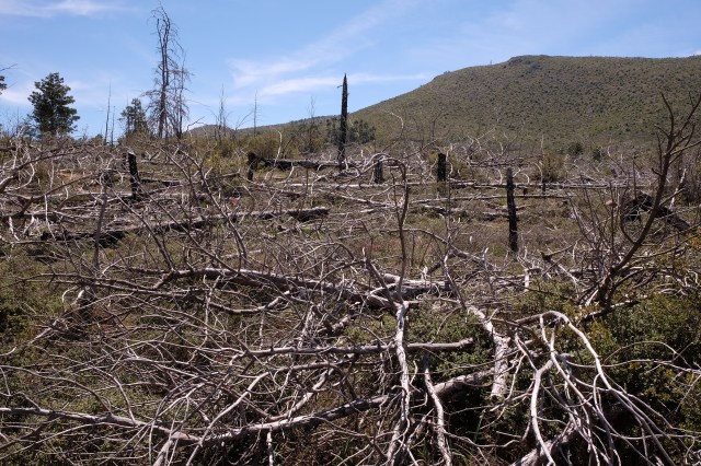 In 2016, in April, at the end of a trip to Greece, I drove a long way round back towards the airport, though Parnon, or Parnonas, in the Peleponnese. After the beautiful forests of the Taygetos mountains above Anavriti, with both ancient black pines and thousands of young saplings, I quickly found mself driving through the aftermath of a terrible fire. Seven years on, and still desolate.